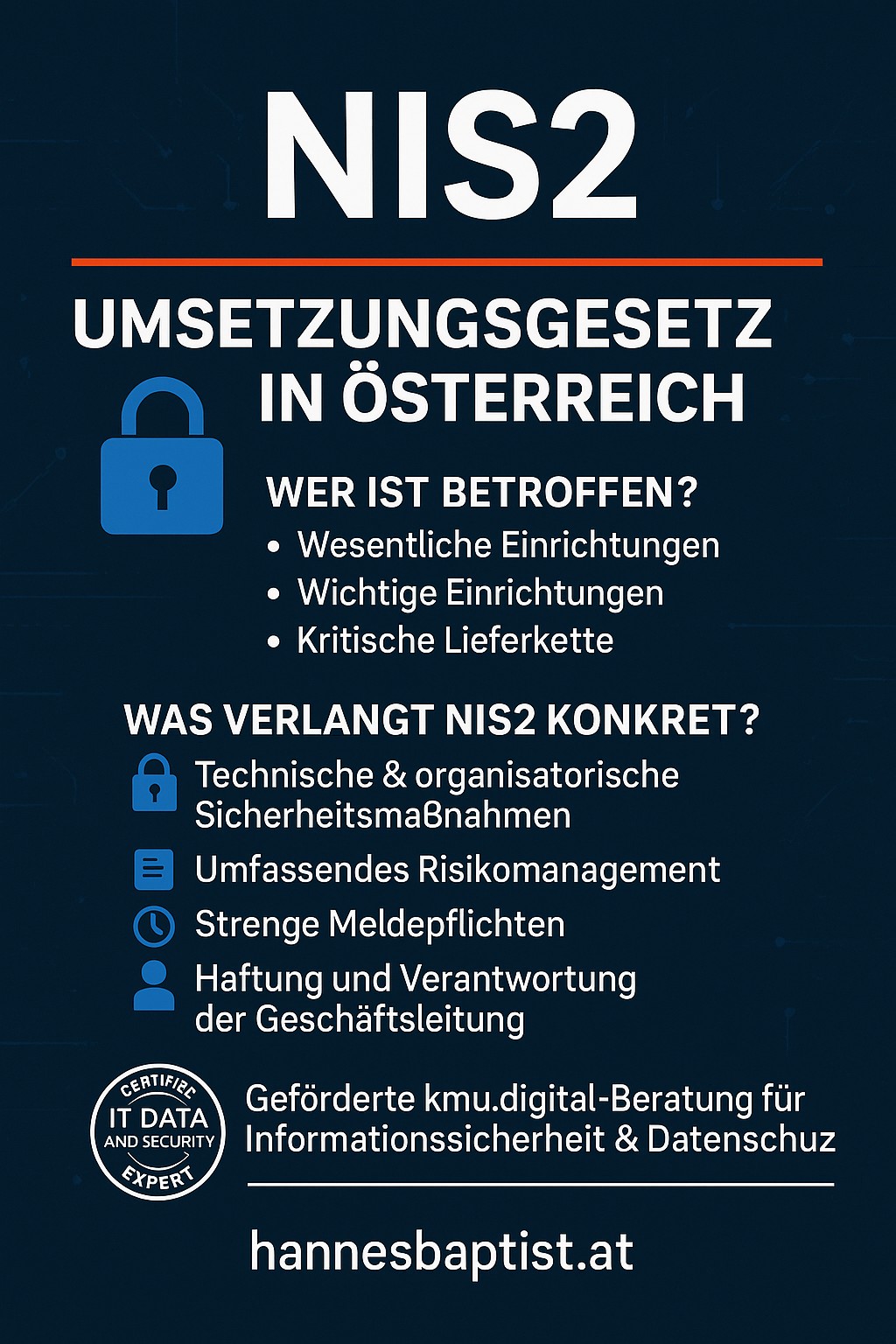 NIS2-Umsetzungsgesetz (NIS2-UG) in Österreich Was Unternehmen jetzt wissen und umsetzen müssen Mit dem Inkrafttreten des NIS2-Umsetzungsgesetzes (NIS2-UG) hat Österreich einen
